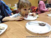 Jeśli mielibyśmy ocenić kto na spotkaniu Klubu Rodzinnego we wtorek 18.02 lepiej się bawił- dzieci vs rodzice byłby problem…Na pierwszej części spotkania mamotekowi rodzice zainscenizowali przedstawienie „Kot w butach ” wg scenariusza Jana Brzechwy, i ubaw, my, dorośli mieliśmy wyśmienity. Natomiast na drugiej części spotkania, kiedy rozpoczeliśmy kocią ucztę w kocich makijażach na widok dania głównego (Nutella) to dzieci szeroko się uśmiechnęły :D
