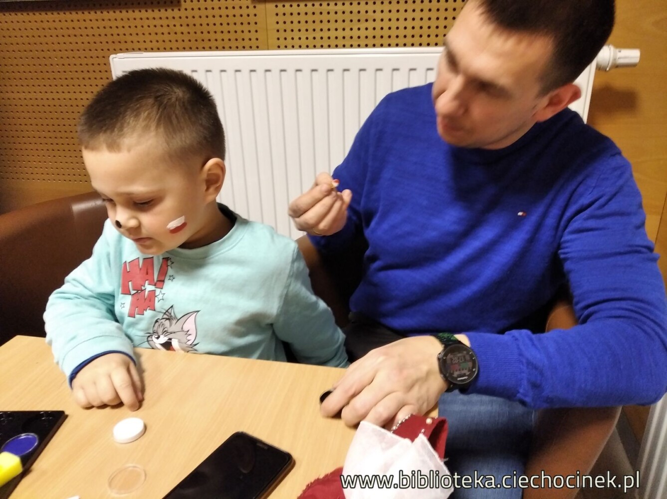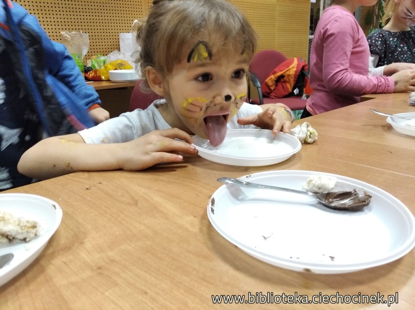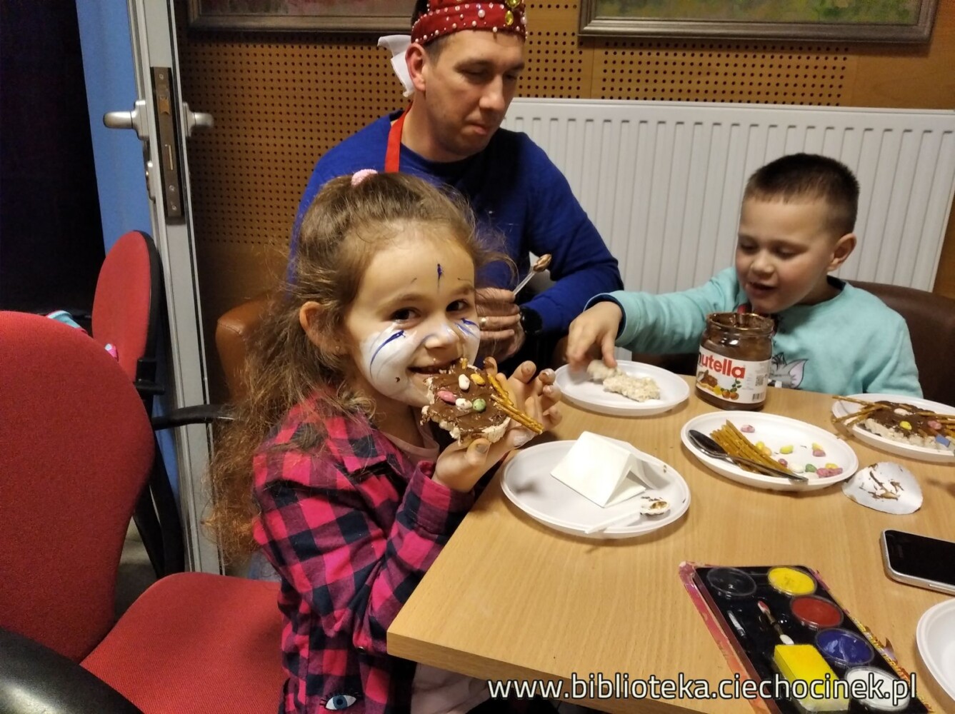Jeśli mielibyśmy ocenić kto na spotkaniu Klubu Rodzinnego we wtorek 18.02 lepiej się bawił-  dzieci vs rodzice byłby problem…Na pierwszej części spotkania mamotekowi rodzice zainscenizowali przedstawienie „Kot w butach ” wg scenariusza Jana Brzechwy, i ubaw, my, dorośli mieliśmy wyśmienity. Natomiast na drugiej części spotkania, kiedy rozpoczeliśmy kocią ucztę w kocich makijażach na widok dania głównego (Nutella) to dzieci szeroko się uśmiechnęły :D