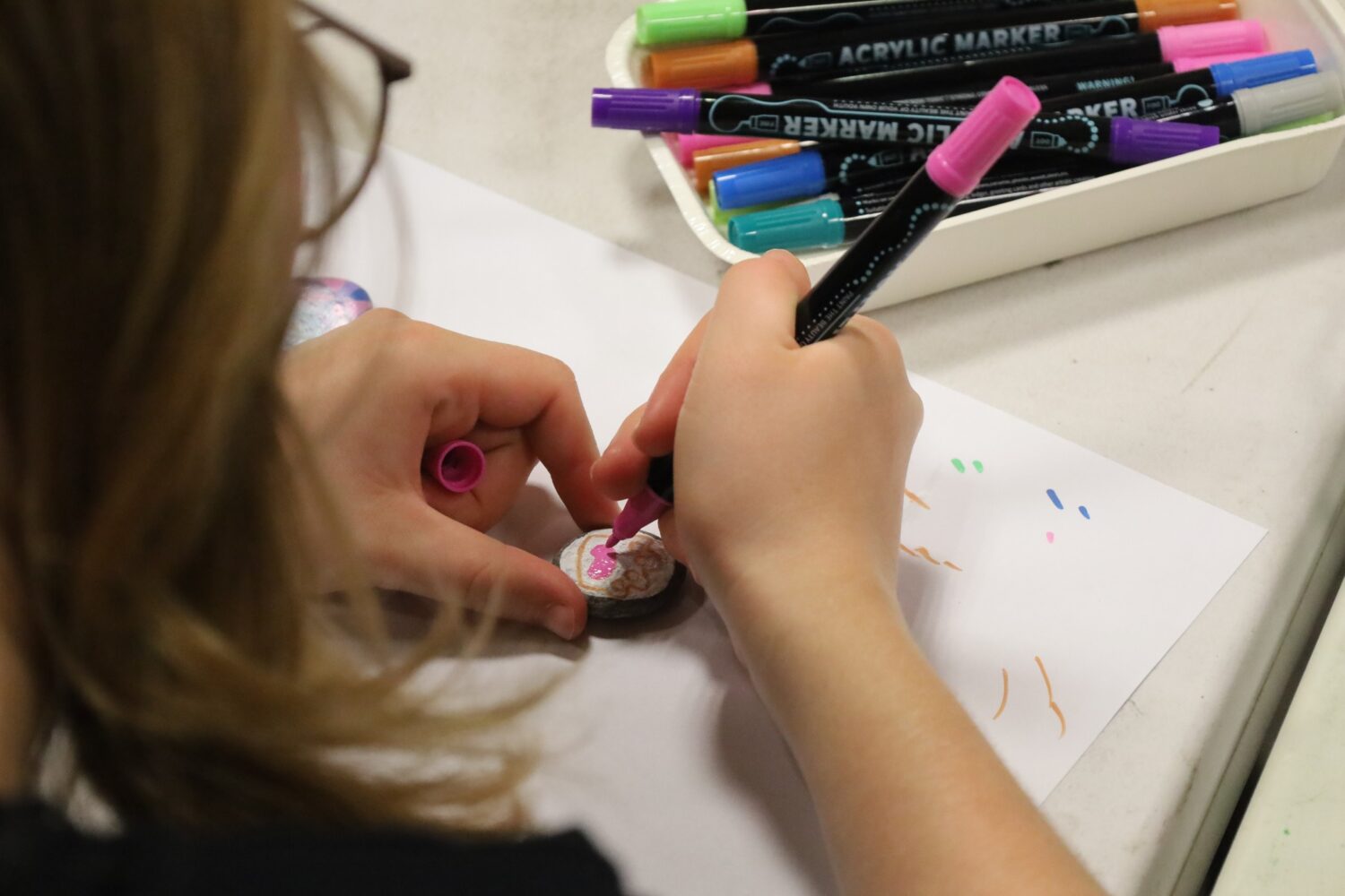 Spotkanie było okazją do rozwijania kreatywności, wyobraźni i zdolności manualnych. Zwyczajne kamienie zamieniły się w kolorowe ozdoby – powstały motywy zwierząt, kwiatów, fantastycznych postaci, a także różnorodne wzory geometryczne.