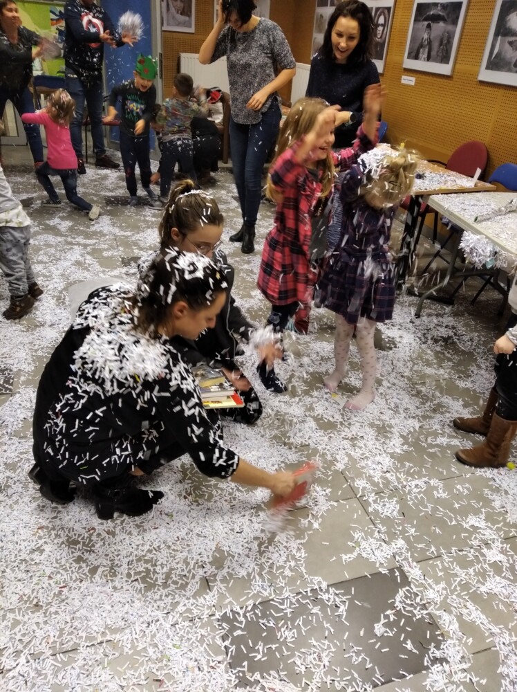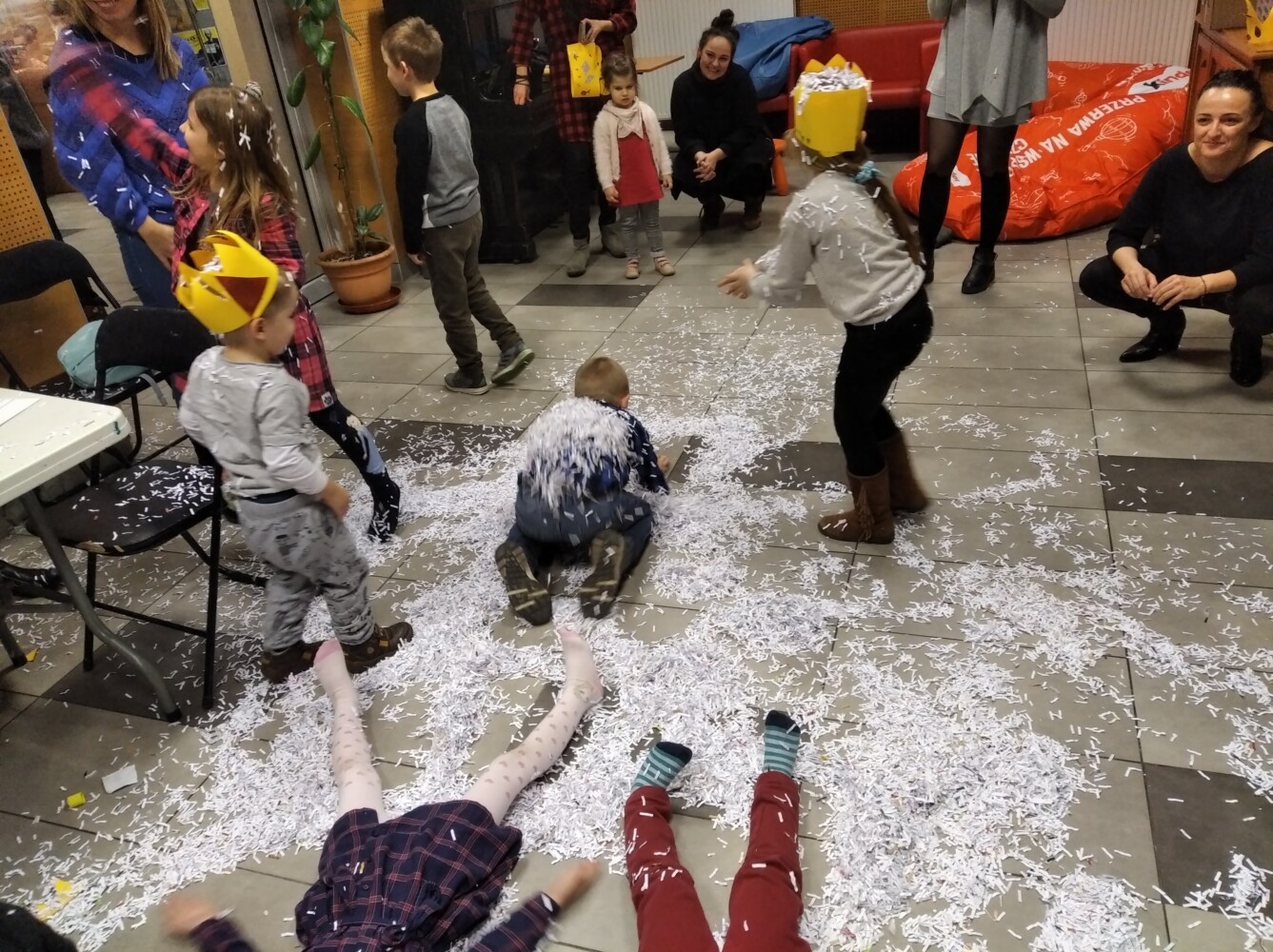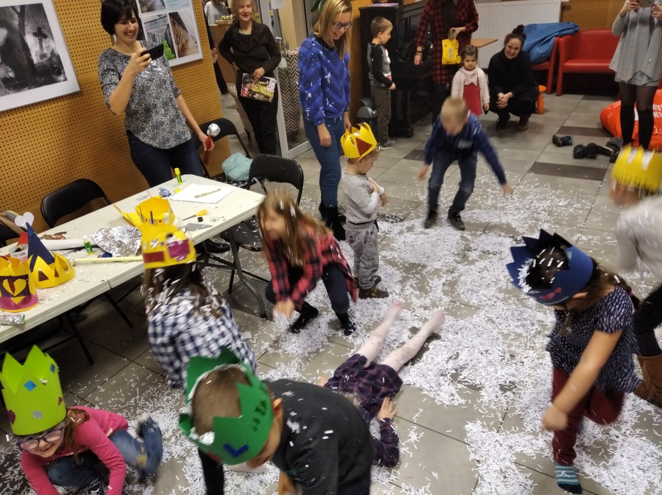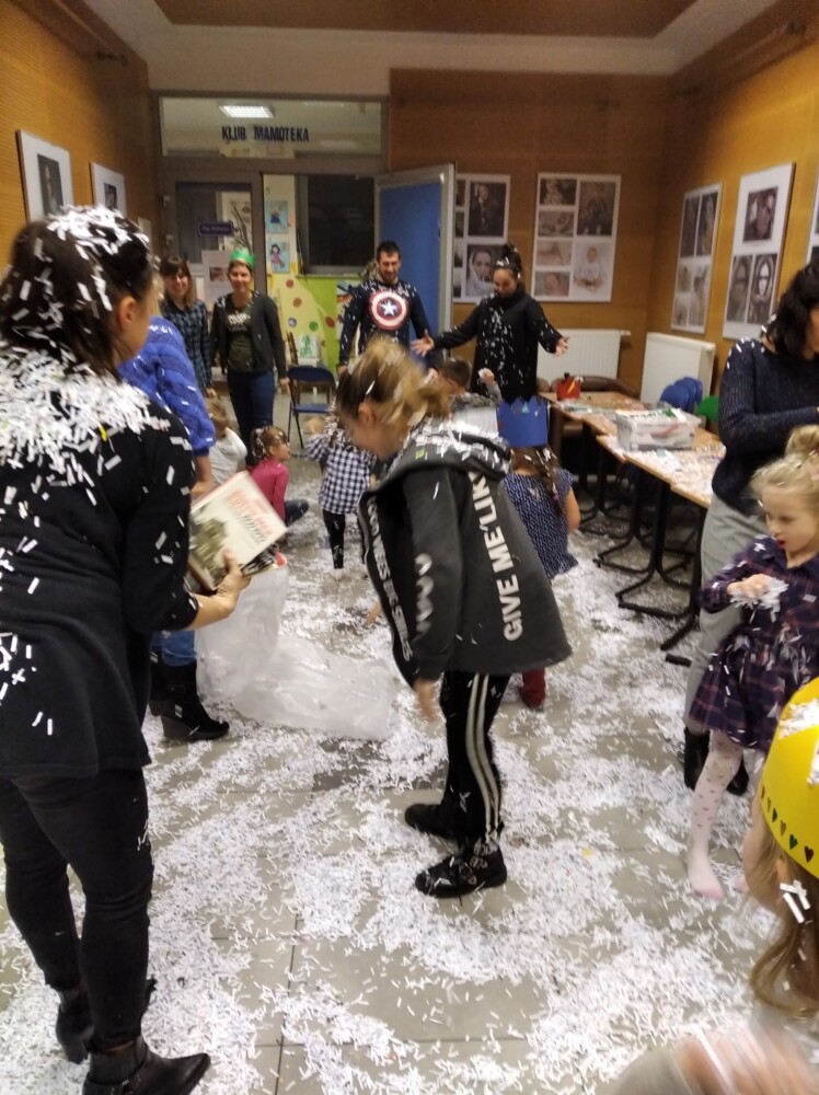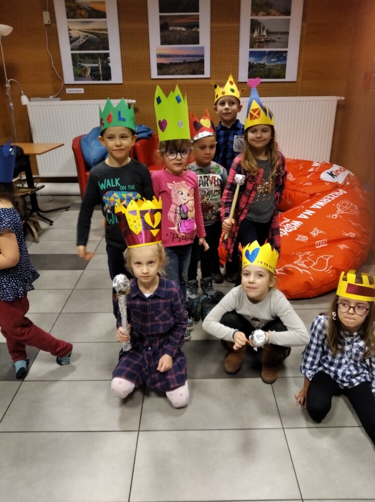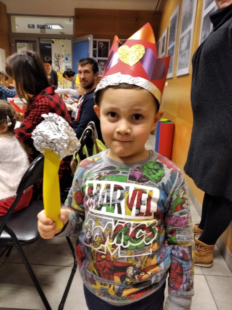 Kto chce być królem, a kto Królową? A kto chce by spadł śnieg? Te i inne życzenia spełniają się na zajęciach dla dzieci. Ale czy łatwo być królem, co dać poddanym aby byli szczęśliwi? A czy Król zawsze był mądry i stary? Na te pytania szukaliśmy odpowiedzi rozmawiając o książce Janusza Korczaka „Król Maciuś Pierwszy”. W paradzie po czytelni Króle i Królowe w koronach własnego pomysłu mogli cieszyć się… śniegiem, dzieci były dość zdziwione opadami a rodzice poczuli się jak dzieci przypominając sobie zimowo-śniegowe igraszki. Było wesoło i długo pewnie nie zapomnimy tych zajęć . Wszystko to podczas Mamoteki na którą zapraszamy w każdy wtorek o 16.30.