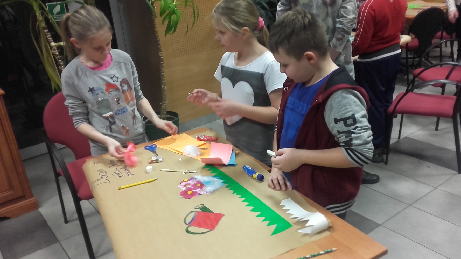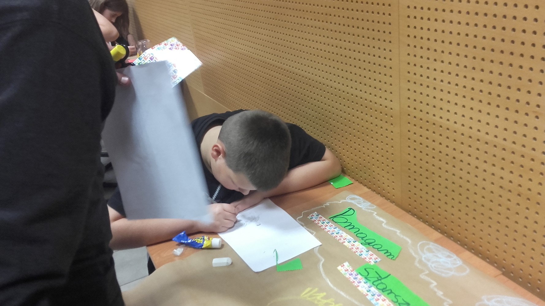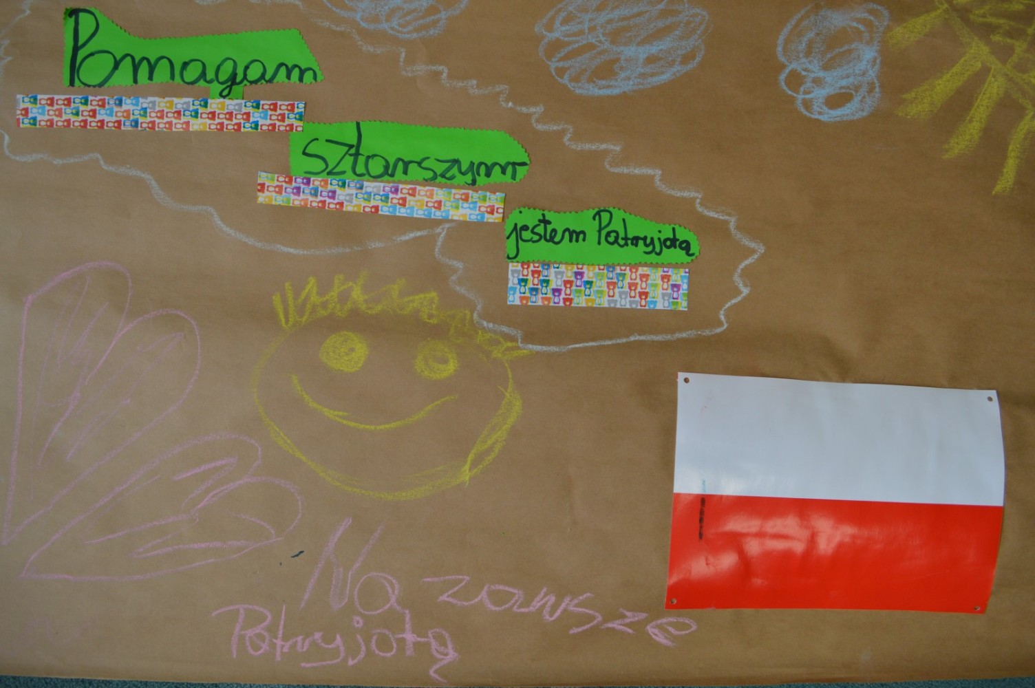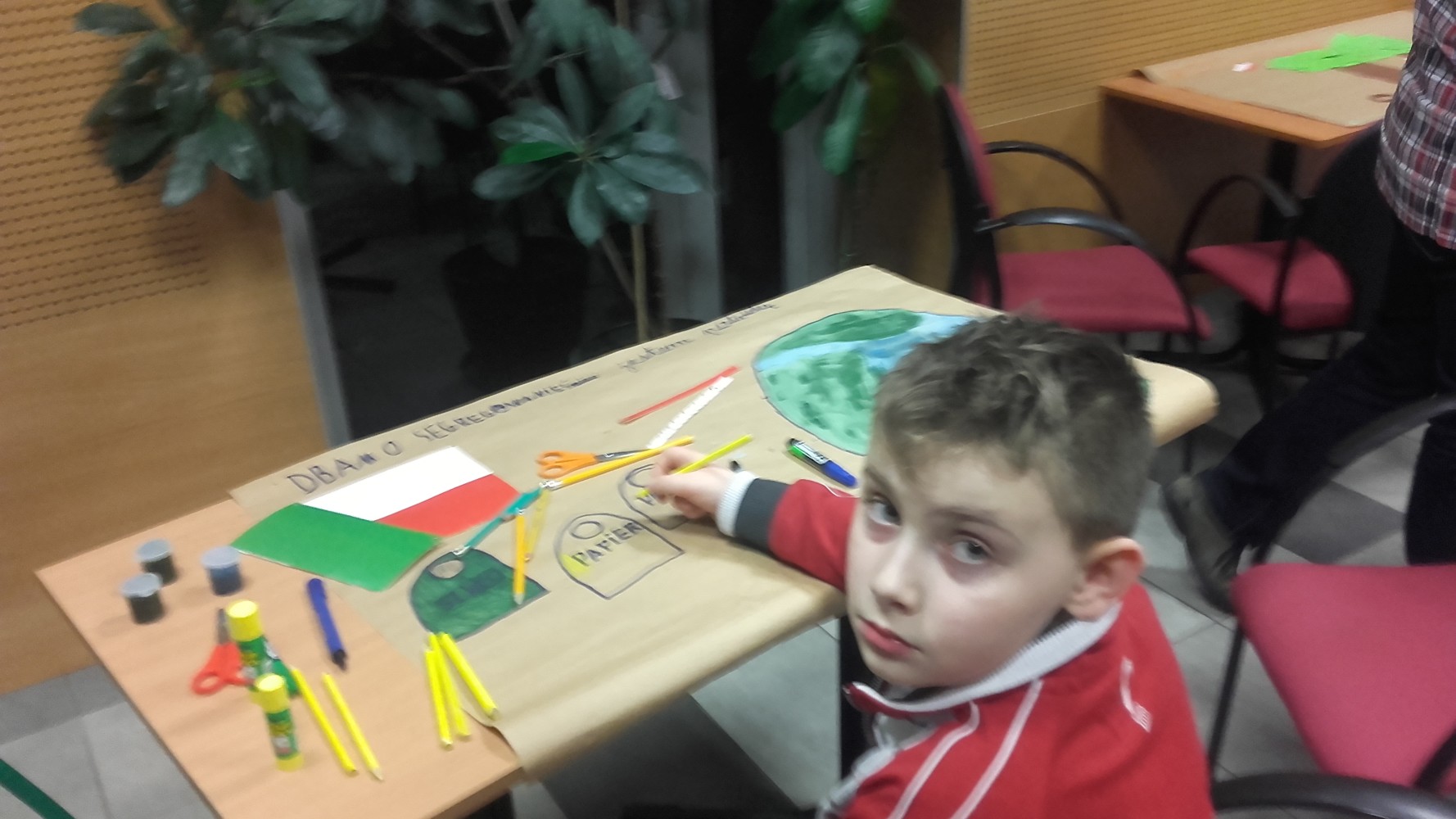 W zajęciach warsztatowych dotyczących tworzenia plakatu opartych na ksiażce Joanny Olech „Kto ty jesteś” można było uczestniczyć w drugi czwartek ferii. Po lekturze picturebooka uczestnicy pracując w grupach stworzyli własne, wieloformatowe plakaty pokazujące ich pomysł na bycie patriotą. Zdjęcia prac jakie powstały podczas zajęć możecie ogladać poniżej.