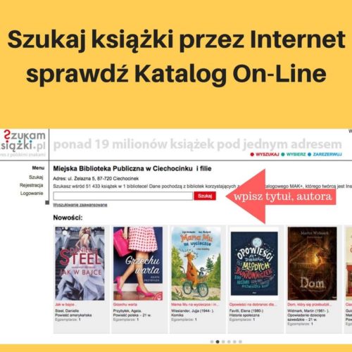 Z pomocą przychodzi nam nowoczesna technologia, nie sposób z niej dzisiaj nie skorzystać. Zachęcamy do sprawdzania Katalogu On-Line, gdzie znajduje się aktualna baza naszych zasobów książkowych. Wpisując tytuł książki bądź jej autora możemy zobaczyć czy książka jest dostępna czy w wypożyczeniu.