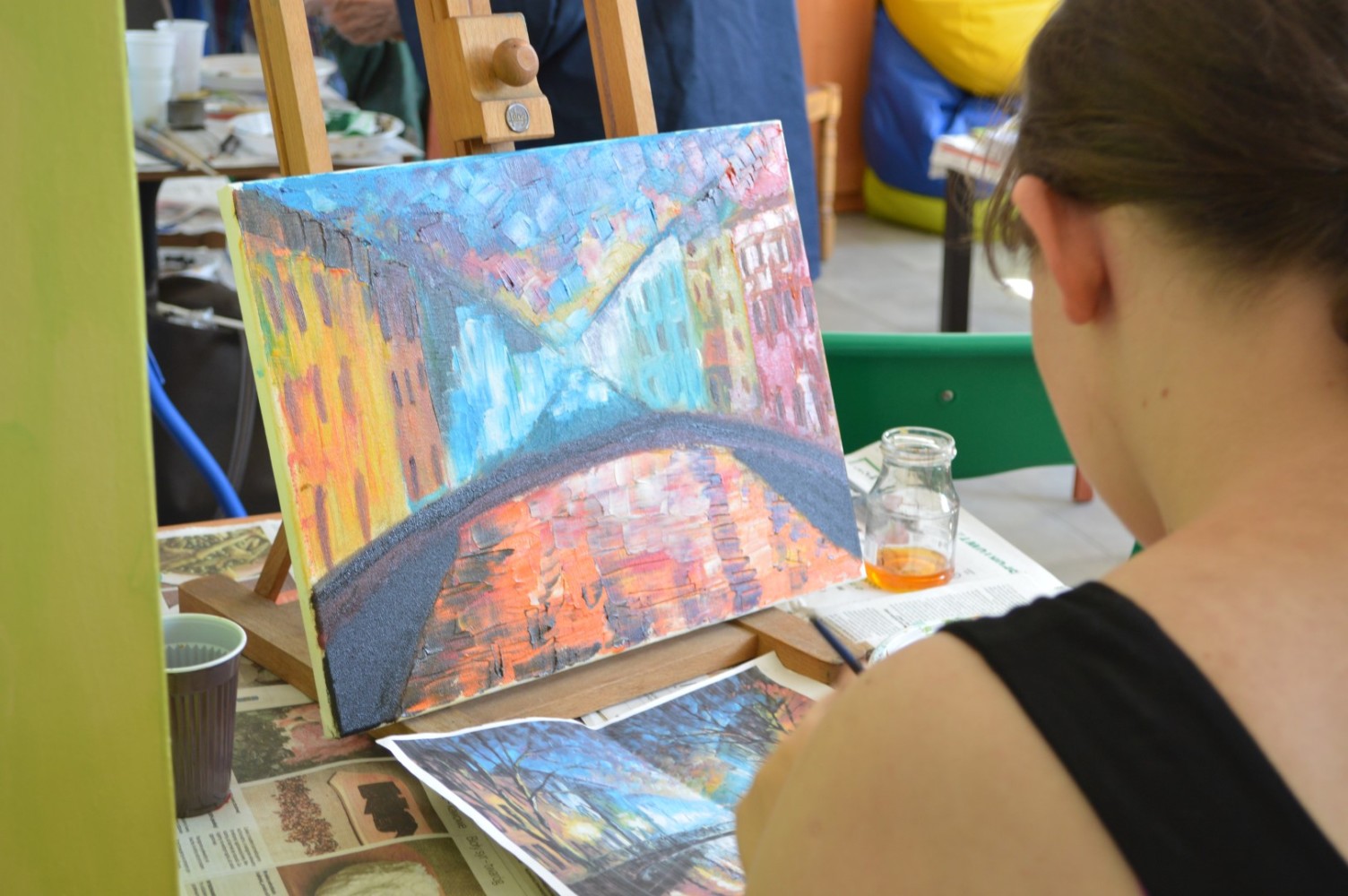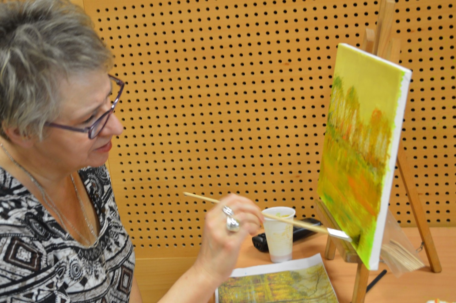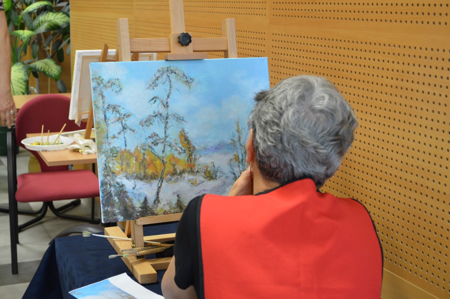 W poniedziałki i środy o godz. 10.30 w czytelni mają miejsce spotkania „Relaks przy sztalugach”. Instruktorką grupy malarskiej jest art. plastyk Stefania Skibińska- Bystrek. Grupa malarska przeznaczona jest dla amatorów- osób , które jeszcze nie próbowały swoich sił przy sztaludze, choć widząc efekty trzech spotkań, jakie odbyły się do tej pory, trudno w to uwierzyć. Zapraszamy wszystkich chętnych do biblioteki.